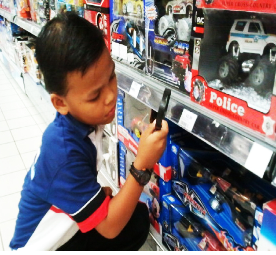 Hi! I am Muhammad Hafiz and I am 10 years old. Do you know what I am doing? I am checking the price for this item because I am a ‘ price detective’. I will always check and compare prices before I buy something. I learn this in Money Academy. I’m a ‘Ringgit Savvy Kid’ now.